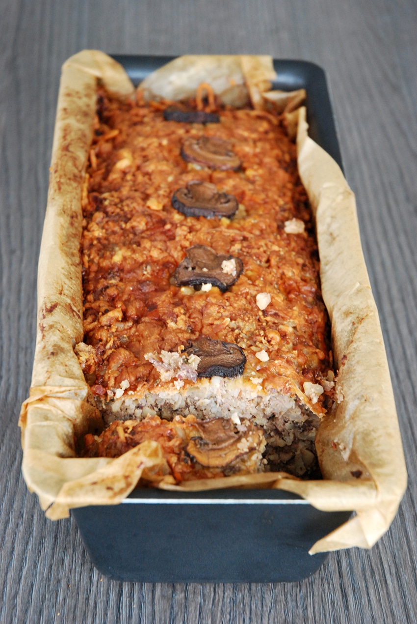 Ce faux pain de viande est juste incroyable! Il faut dire que lorsqu’on ne mange pas de viande, ce n’est pas toujours évident de la remplacer dans des plats traditionnels viande/féculents/légumes. Par exemple, si je veux remplacer la viande dans un plat classique en sauce, soit je me contente des substituts de viande vendus en magasin que je ne trouve pas supers bons ou alors, la plupart du temps, je mange le plat sans la viande mais alors je ne profite pas vraiment de la sauce! Avec ce pain aux noix végétarien, la solution est trouvée! La texture est identique à un pain de viande, il se tient bien et il est donc facile de le couper en tranches. Et le goût…:) En plus il se congèle parfaitement. Top!!