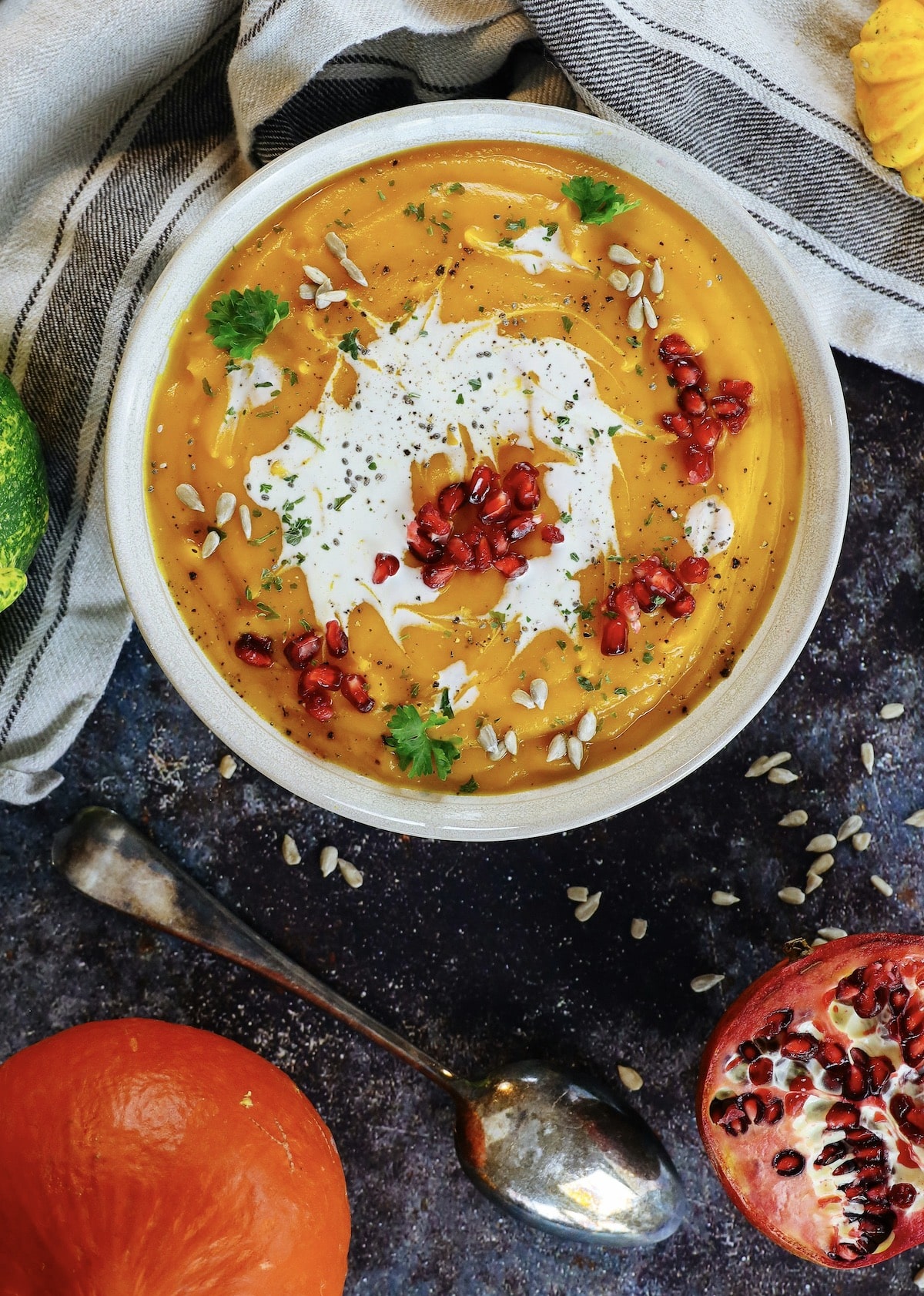 - Velouté de butternut → se conserve 2-3 jours au frigo, se réchauffe parfaitement.
