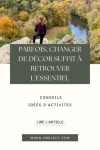 Changer de décor, c’est surtout un état d’esprit. C’est observer, écouter, ralentir. Même quelques heures dans un endroit différent peuvent suffire à nous rappeler ce qui est vraiment important. En ce qui me concerne j’ai déjà expérimenté plusieurs types de « retraits »: randonnées, retraites de yoga près de chez moi ou à l’étranger, atelier d’un jour ou moins, chemin de Compostelle, week-end à 200km ou voyages plus lointains, après-midi spa etc. Seule de préférence, mais pas toujours.
